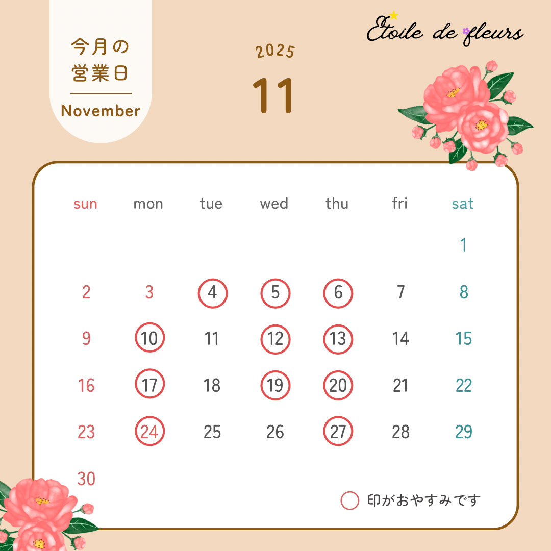11月の営業日をご確認のうえ、ご予約ください。