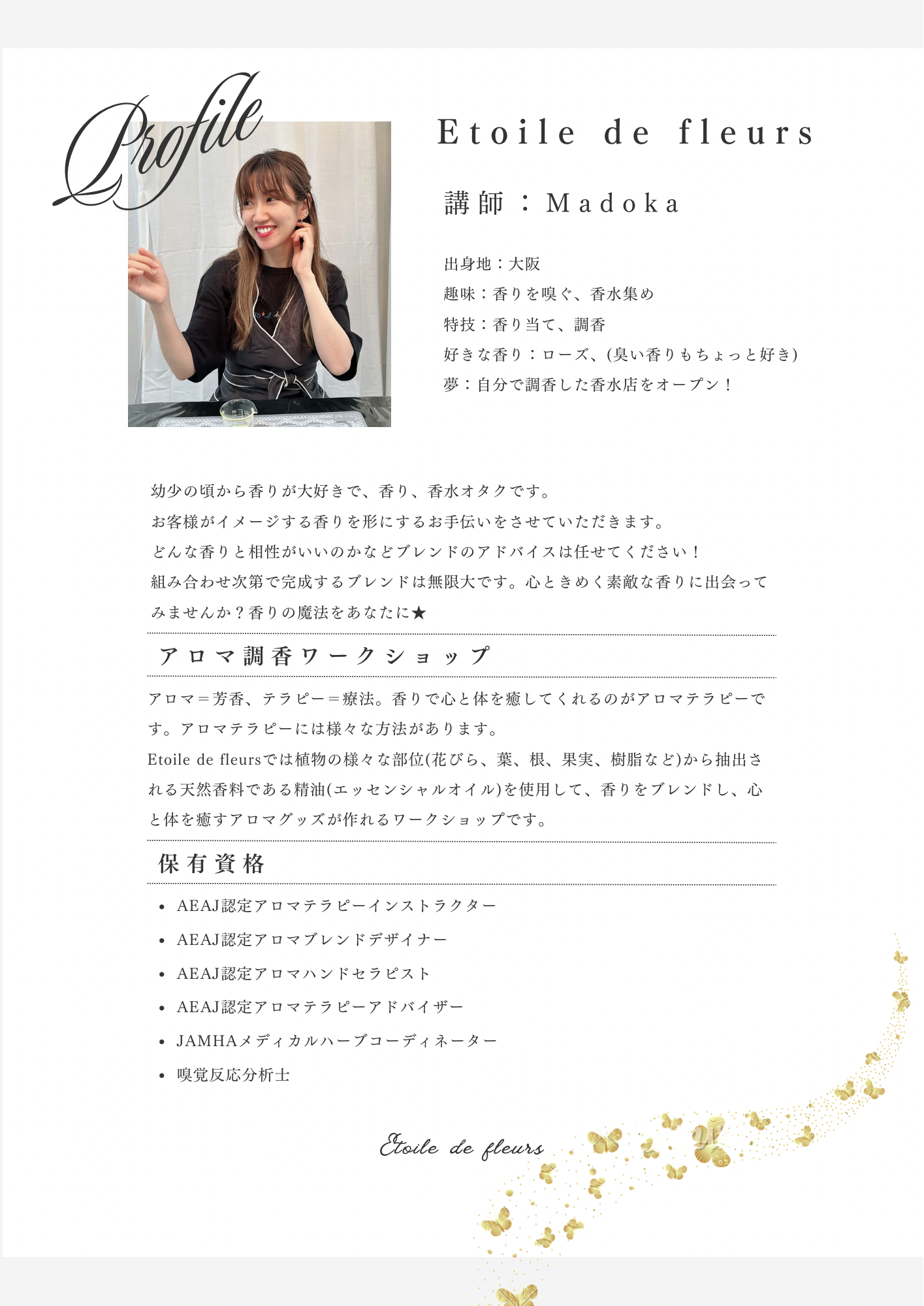 AEAJ認定資格『アロマテラピーアドバイザー認定講習会』と『アロマテラピー検定対応コース』を受講いただけます。詳細は以下をご確認ください。